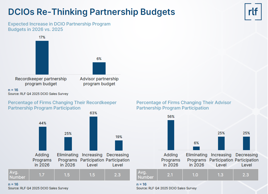 At our annual DCIO event in late February, members engaged in a lively conversation about the rising expense of partnerships in 2025. Across the last 5+ years, we’ve seen a significant rise in the number and cost of partner programs with both recordkeepers and advisory firms. Empower was the first recordkeeper to put a significant ask in front of DCIO firms and faced some early questions about whether they could deliver value to justify the cost.